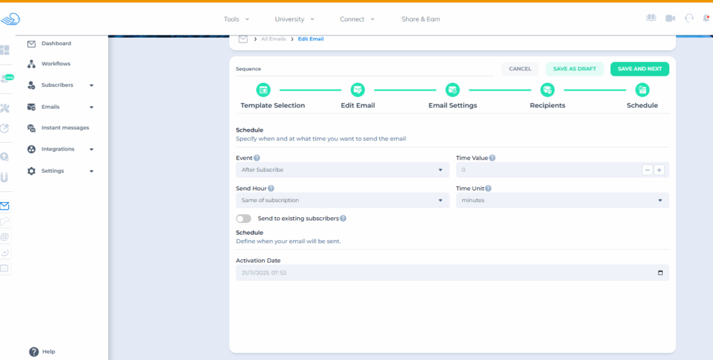 - Sequence sends based on the configured time
